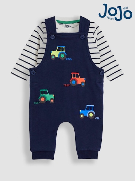 JoJo Maman Bébé 2-Piece Applique Dungarees & Zolaqlı Üst Dəst