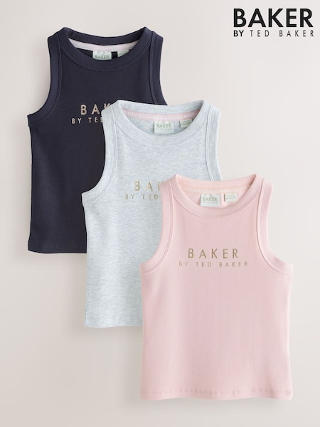 Baker by Ted Baker Çəhrayı/Bənövşəyi Qabırğalı Uzunqol Futbolkalar 3 Paket