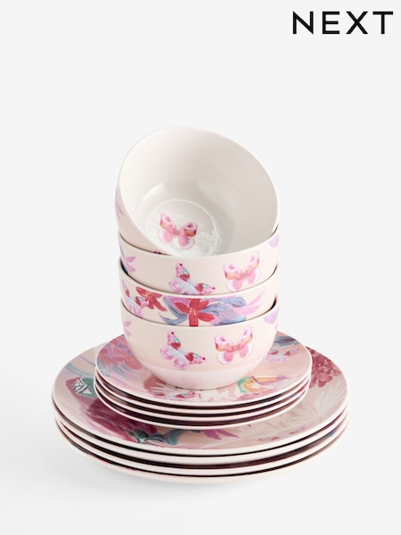 12 Piece Pink Artist Floral Print Dinner Set
