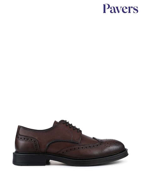 Pavers Brown Wide Fit Leather Brogue Derby Shoes