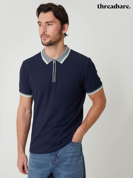 Threadbare Blue Pique Tipping Collar Quarter Zip Polo Shirt