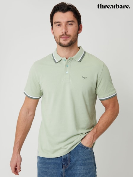 Threadbare Green Herringbone Tipping Detail Pique Polo Shirt