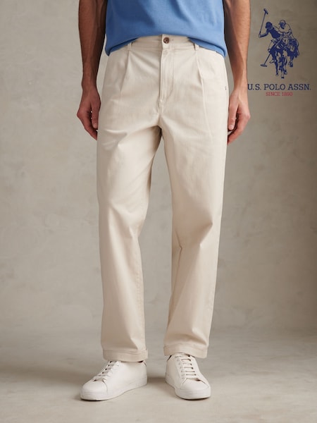 U.S. Polo Assn. Natural Pleat Front Lightweight Chino Trousers