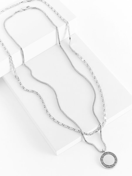 Silver Tone Coin Multi-Chain Necklace
