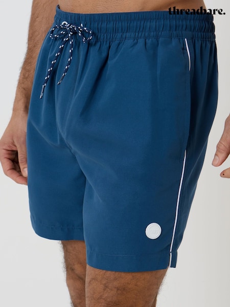 Threadbare Blue Contrast Piping Quick Dry Swim Shorts