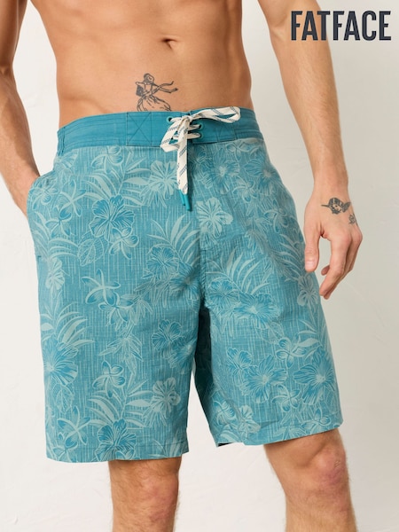 FatFace Camber Teal Blue Bamboo Print Swim Shorts