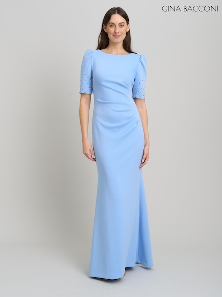 Gina Bacconi Blue Jadie Maxi Dress With Beaded Sleeves