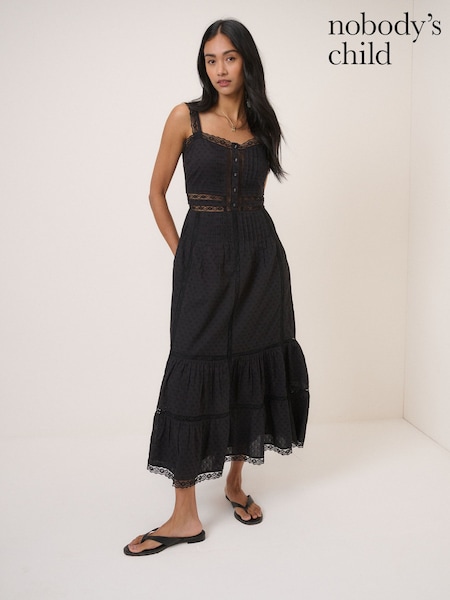 Nobodys Child Black Betsi Lace Trim Midi Dress