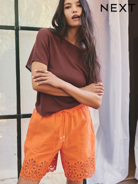 Orange Crochet Trim Shorts