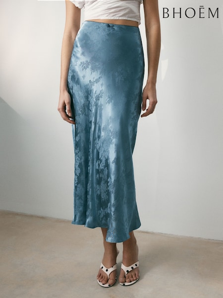 Baukjen Blue Bobbie Cotton Stretch Denim Midi Skirt